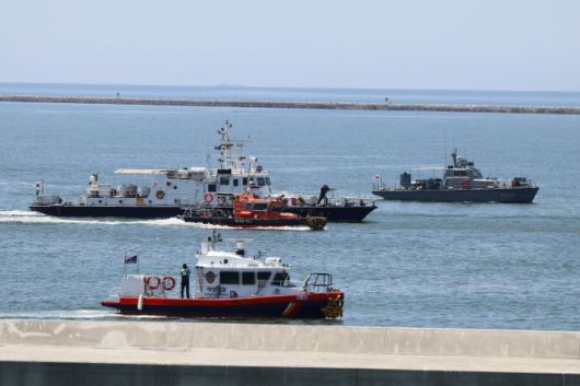 아시아투데이 나현범 기자 = 전북 군산해양경찰서는 지난 9일 오후 2시 군산항 앞 해상에서 대테러 상황을 가정한 '2025년 항만방호 합동훈련'을 실시했다.