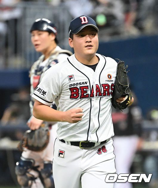 [OSEN=고척, 이대선 기자] 18일 오후 서울 고척스카이돔에서 두산 베어스와 KT 위즈의 2021시즌 KBO리그 한국시리즈 4차전이 열렸다.4회초 1사 1루에서 두산 권휘가 마운드를 내려가고 있다. 2021.11.18 /sunday@osen.co.kr |