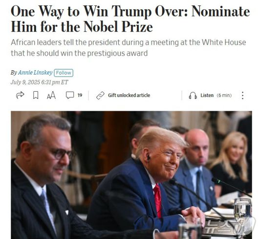 트럼프는 노벨 평화상 얘기만 나오면 눈이 반짝반짝하기 때문이다.