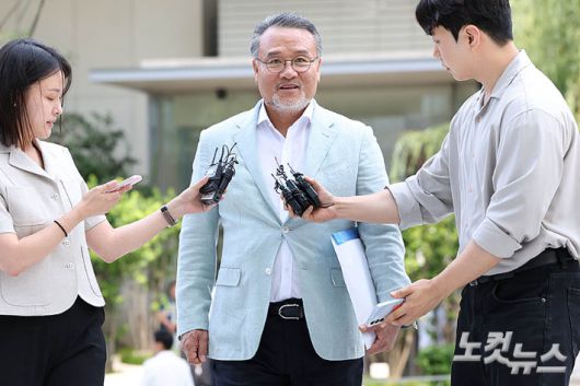 이일준 삼부토건 회장과 조성옥 전 삼부토건 회장이 10일 오전 서울 종로구 KT광화문빌딩 웨스트에 마련된 김건희 특검 사무실에 피의자 신분으로 출석하고 있다.