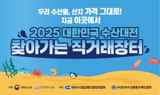 한편 찾아가는 직거래 장터 추진 일정 등 자세한 정보는 대한민국 수산대전 누리집(https://fsale.kr)에서 자세히 확인할 수 있다.