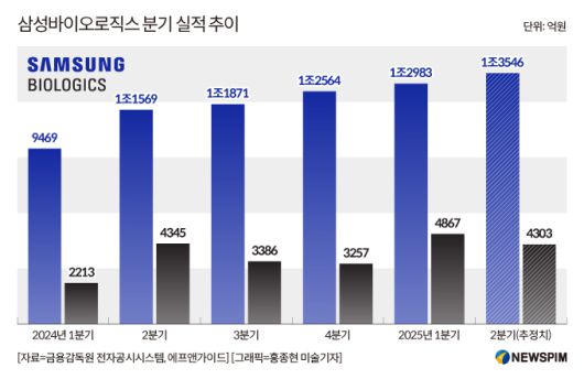[서울=뉴스핌] 김신영 기자 = 삼성바이오로직스가 올 2분기에도 최대 실적을 기록할 것이란 전망이 나온다. 미국의 의약품 관세 부과 예고로 인한 불확실성과 환율 하락 등에도 불구하고 4공장 가동률 상승이 매출 확대로 이어지고 있다는 평가다.