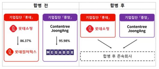 양사는 영화 투자배급업(롯데엔터테인먼트·플러스엠) 및 영화관(롯데시네마·메가박스) 사업을 영위하고 있다. 합병 이후 하나의 회사는 소멸할 예정이다.