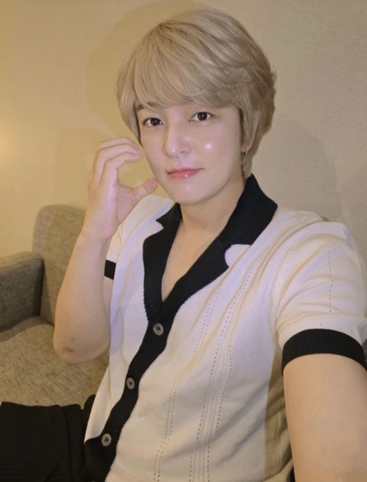 사진 속 김정훈은 금발 머리를 한 채 볼 하트 포즈를 취했다. 동안 외모로 훈훈한 매력을 뽐냈다.