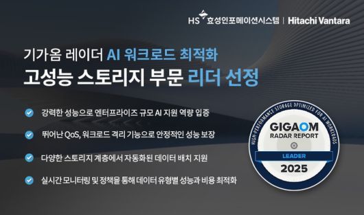 양정규 HS효성인포메이션시스템 대표는 “이번 리더 선정은 히타치 iQ가 실제 고객 환경에서 검증된 성능과 지능형 데이터 운영 역량을 갖춘 솔루션임을 입증한 결과”라며 “국내에서도 차세대 AI 인프라에 요구되는 핵심 기술을 바탕으로 고객의 데이터 혁신을 주도하고 성공적인 디지털 전환을 적극 지원할 것”이라고 말했다.