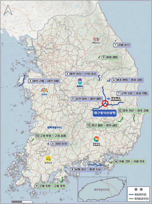 국토교통부가 발표한 총 8개 국도 승격 노선 중 2개가 신공항 접근로라는 점에서, 향후 대구경북신공항 연계 교통망 구축이 본격화될 전망이다.