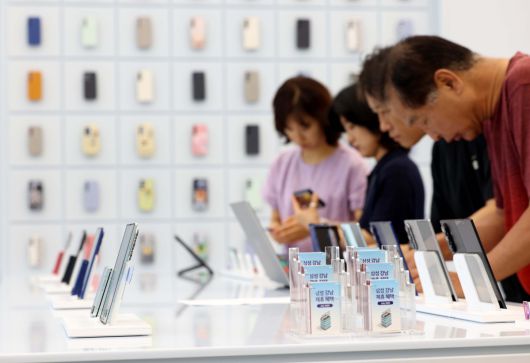 삼성전자가 초슬림 대화면 폴더블폰 ‘갤럭시 Z 폴드7(Galaxy Z Fold7)’와 플립형 폴더블폰 ‘갤럭시 Z 플립7(Galaxy Z Flip7)’을 공개한 가운데 10일 서울 서초구 삼성 강남에 제품이 전시돼 있다. 신태현 기자 holjjak@ |