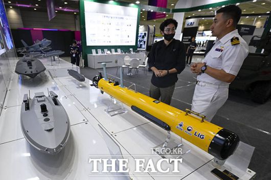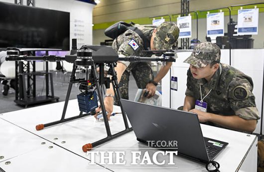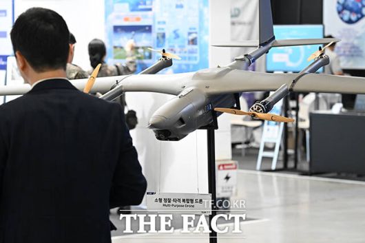 '2025 무인이동체산업체엑스포 & 2025 자율주행모빌리티산업전'이 10일 오전 서울 강남구 코엑스에서 열린 가운데 관람객들이 국군 무인기를 살펴보고 있다. /장윤석 기자 |