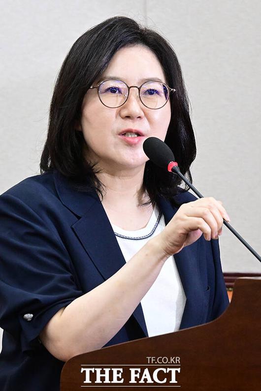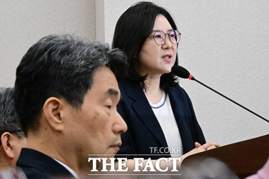 고민정 더불어민주당 의원은 이날 '전두환 명예회복 추진' 취지의 리박스쿨 문건을 공개하며 손효숙 대표에게 관련 질의를 쏟아냈다. |