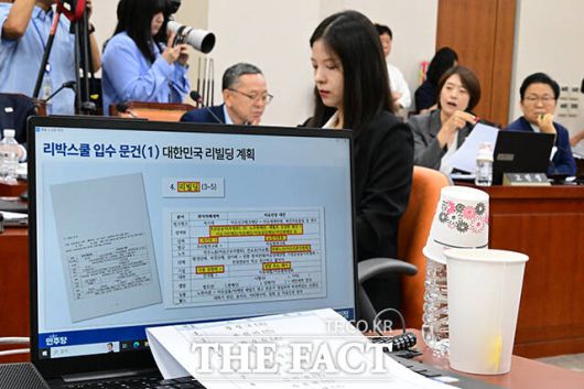 고민정 더불어민주당 의원은 이날 '대한민국 리빌딩 계획' '전두환 명예회복 추진' 취지 등의 리박스쿨 문건을 공개하며 손효숙 대표에게 관련 질의를 쏟아냈다.