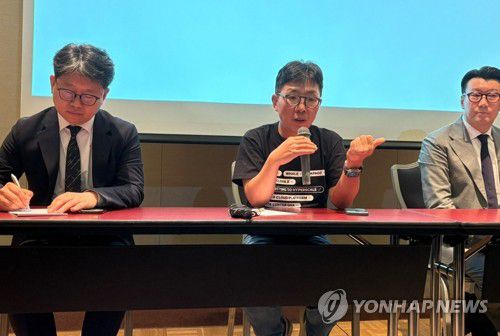(오사카=연합뉴스) 김경희 기자 = 김유원 네이버클라우드 대표가 지난 9일 일본 오사카에서 열린 라인웍스 10주년 기자간담회에서 발언하고 있다. 2025.7.10
