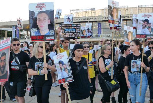 9일(현지시각) 이스라엘 텔아비브에서 팔레스타인 무장정파 하마스가 억류 중인 이스라엘 인질의 가족과 지지자들이 인질 석방을 촉구하는 행진을 열고 있다. 이스라엘 정부는 가자지구에 약 50명의 인질이 억류돼있으며 이중 약 20명이 생존해있다고 추정한다. 텔아비브/EPA 연합뉴스 |