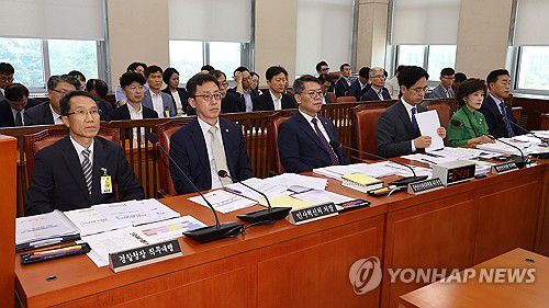 (서울=연합뉴스) 김주형 기자 = 10일 국회에서 열린 행정안전위원회 전체회의에 각 부처 장관 직무 대행 및 처장들이 참석해 자리하고 있다.