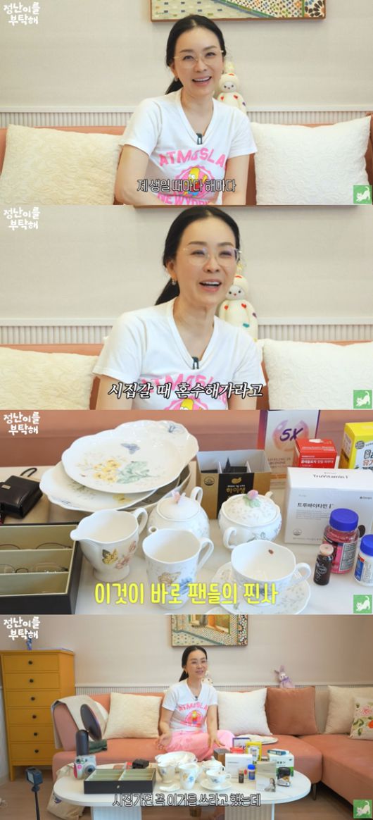 이어 그는 "여기 그릇이 있다. 예전에 '정난 사랑'이라고 제 팬클럽이 있었다. 우리 팬클럽 팬분들이 제 생일 때마다 (그릇) 시리즈를 선물해주셨다. 시리즈별로 다 있다"라며 선물 받은 그릇을 꺼냈다.