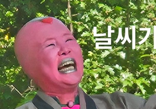 공개된 사진 속에는 랄랄이 얼굴을 분홍빛으로 분장하고 촬영에 임하고 있는 모습. 특히 그는 더위 탓에 얼굴이 변한 것처럼 보이기도 해 눈길을 끌었다.