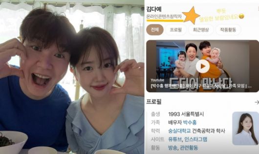방송인 박수홍(55)의 아내 김다예(32)가 '온라인콘텐츠창작자'라는 새 타이틀을 단 것에 뿌듯함을 드러냈다.