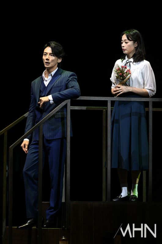 (MHN 이현지 기자) 배우 윤시윤, 전소민이 10일 오후 서울 강서구 LG아트센터에서 진행된 연극 '사의 찬미' 프레스콜에서 열연을 선보이고 있다.