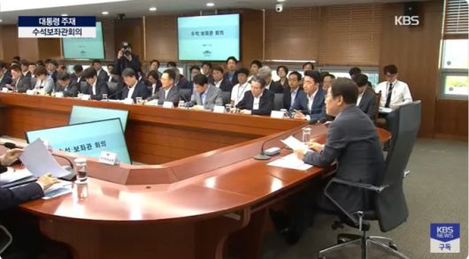 이지명 대통령이 10일 이날 용산 대통령실에서 제3차 수석·보좌관회의를 주재하고 있다. 2025.07.10 [사진=KBS 캡처] |