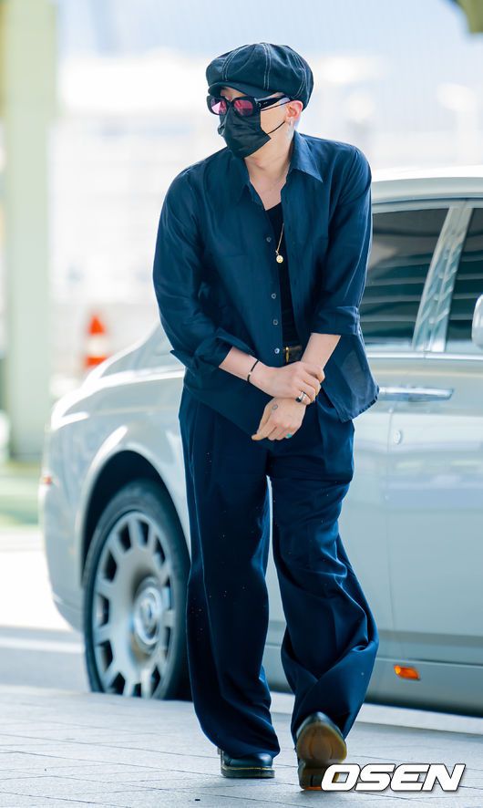 지드래곤이 출국길에 포즈를 취하고 있다. 2025.07.10 / rumi@osen.co.kr