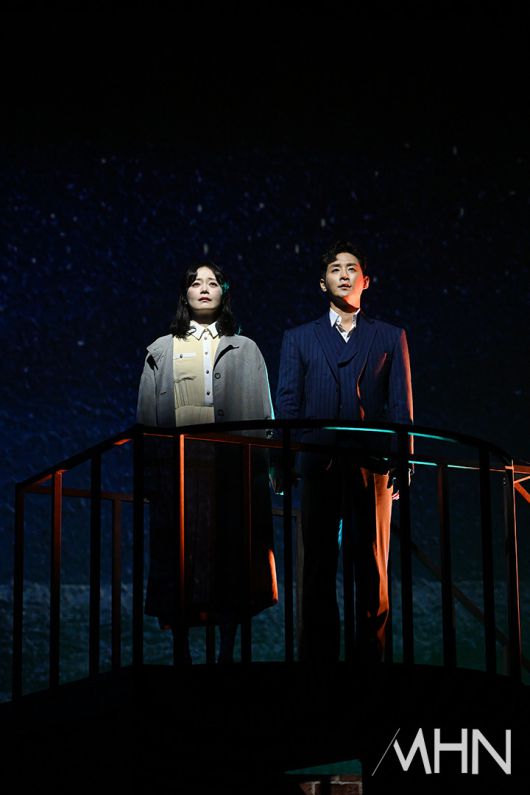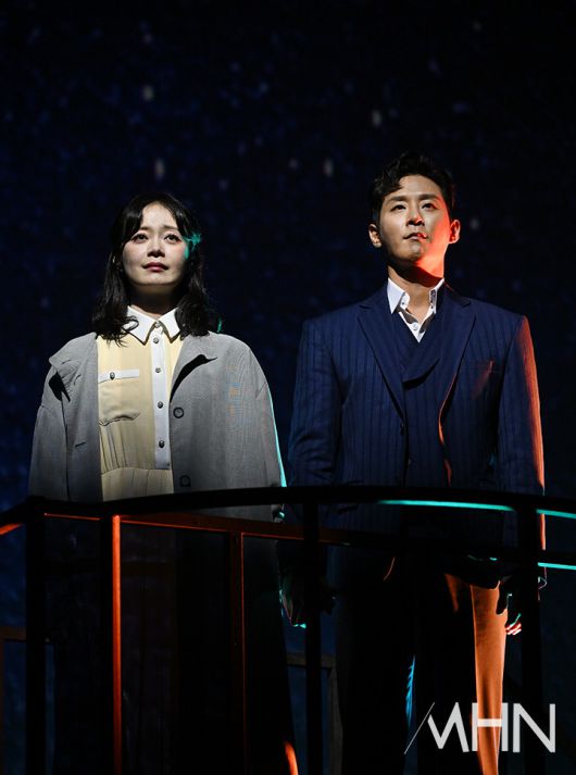 (MHN 이현지 기자) 배우 전소민, 이충주가 10일 오후 서울 강서구 LG아트센터에서 진행된 연극 '사의 찬미' 프레스콜에서 열연을 선보이고 있다.