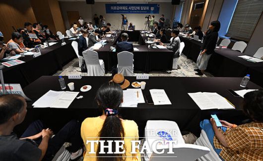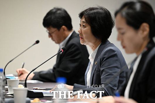 [더팩트ㅣ서예원 기자] 이스란 보건복지부 제1차관이 10일 오후 서울 용산구 피스앤파크 컨벤션에서 열린 '의료급여제도 시민단체 집담회'에 참석해 모두 발언을 하고 있다.