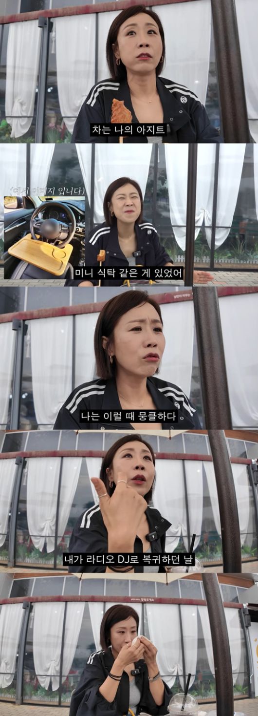 그는 "라디오 하기 전, 밥 먹을 시간이 1시간 있으면 음식을 포장해서 차 안에서 먹었다. 영화 같은 거 보면서. 차는 나의 아지트"라며 "지금은 없는데 옛날에 내 차에 미니 식탁도 있었다"라고 휴게소에 나와 밥을 먹는 이 상황이 생경하다고 했다.