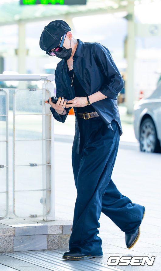지드래곤이 출국길에 포즈를 취하고 있다. 2025.07.10 / rumi@osen.co.kr