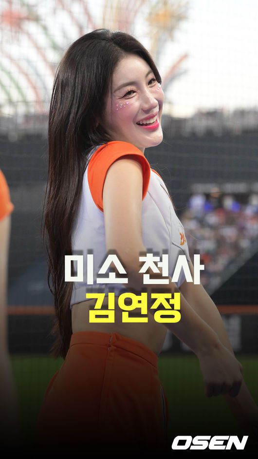 [OSEN=대전, 이대선 기자] 8일 오후 대전 한화생명볼파크에서 2025 신한 SOL Bank KBO리그 한화 이글스와 KIA 타이거즈의 경기가 열렸다. 치어리더 김연정이 공연을 하고 있다. 2025.07.09 /sunday@osen.co.kr