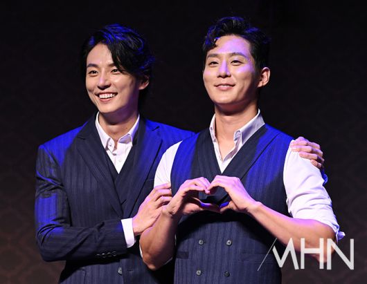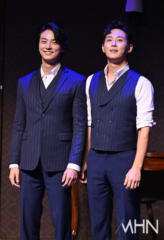 (MHN 이현지 기자) 배우 윤시윤, 이충주가 10일 오후 서울 강서구 LG아트센터에서 진행된 연극 '사의 찬미' 프레스콜에서 포토타임을 갖고 있다.