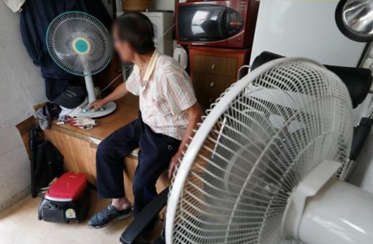 서울 시내 한 아파트 경비실에서 경비원이 선풍기를 이용해 더위를 식히고 있다. 뉴시스 |