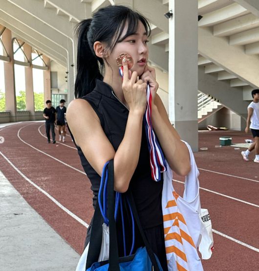함께 공개된 사진에는 운동복 차림으로 트랙 위에 선 김민지의 모습이 담겼다. 검은색 민소매 상의와 반바지 복장으로 어께에 가방을 걸친 채 건강미 넘치는 피지컬을 자랑한다.