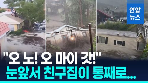 당시 지역 주민 케이틀린 카펜터가 강변에서 급히 대피하며 촬영한 영상에는 맹렬한 기세로 쏟아져 내리는 급류에 집이 통째로 떠내려가는 모습도 담겼습니다.