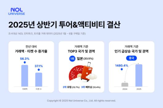 신정호 놀유니버스 부대표는 “다양한 현지 상품을 선제적으로 기획, 공급한 전략이 투어&액티비티 성장세로 이어졌다”면서, “앞으로도 트렌드에 빠르게 대응하며 상품 경쟁력을 지속적으로 강화해 고객들이 더 풍성한 여행 경험을 누릴 수 있도록 지원할 계획”이라고 말했다.
