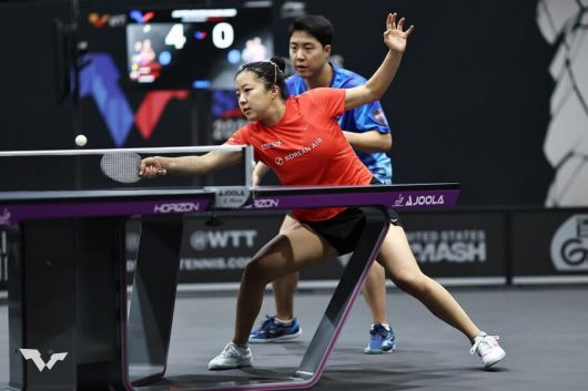 임종훈-신유빈 조는 10일(한국시간) 미국 라스베이거스에서 열린 WTT 미국 스매시 혼합복식 8강에서 스페인의 알바로 로블레스-마리아 샤오 조를 3-0(11-8 12-10 11-6)으로 눌렀다.