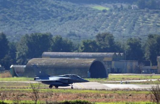 그리스 타나그라 공군기지를 배경으로 활주로에 서 있는 그리스 공군 라팔 전투기. 출처=밀리타르니 |
