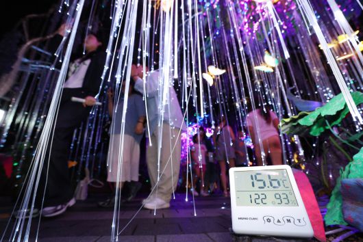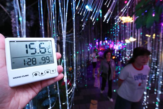 이날 광명동굴 내부 온도는 15∼16도를 보이며 외부 기온의 절반에도 미치지 못 하는 서늘한 기온을 보였다.
