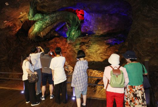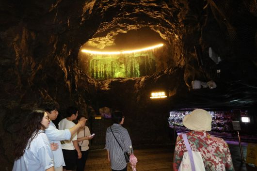 7월 초순 서울의 기온이 역대 최고를 기록하는 등 '때이른 폭염'이 계속되고 있는 10일 경기 광명시 가학동 광명동굴에서 관람객들이 동굴 내부를 관람하며 더위를 식히고 있다.