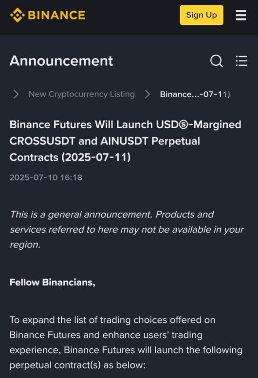 크로쓰가 바이낸스알파에 이어 선물 시장에 상장한다.