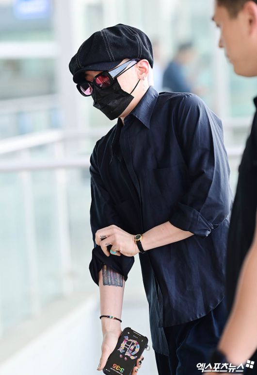 지드래곤은 이른바 '빵모자'로 불리우는 뉴스보이 캡으로 개성을 드러냈다. 공항 입출국 시마다 선보이는 틴트 선글라스와 블랙 마스크로 얼굴을 가리며 시크한 분위기를 더했다. 특유의 화려한 네일 아트와 손가락, 팔뚝에 새겨진 타투 또한 눈에 띄었다.