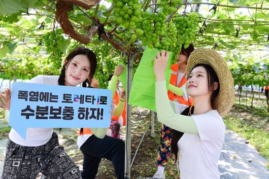 코카콜라사의 이온보충음료 토레타가 때 이른 무더위 속 여름철 수분 보충의 중요성을 알리기 위해 전국 대학생 농촌봉사단체에 토레타를 지원하고 있다. 지난 9일 경기도 안성시 서운면에서 진행된 상명대 농촌봉사현장에서 모델들과 학생들이 토레타와 함께 폭염 속 수분 보충의 중요성을 알렸다. 코카콜라 |