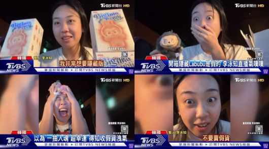 10일 대만 TVBS는 “전세계적인 라부부 열풍이 한국에도 퍼져나가고 있다. 이제 많은 아티스트들이 구매와 언박싱에 뛰어들고 있는 가운데 가수 이영지는 ‘히든 에디션’을 생각하고 4개를 한꺼번에 구입했지만 예상 외로 모두 가짜였다. 이에 분노한 이영지는 라이브 방송을 시작해 구매 전 가품에 주의해 달라고 당부했다”는 내용을 보도했다.