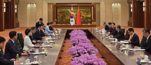 그는 "시진핑 주석은 이재명 대통령 취임 후 신속하게 통화했고, 중한 전략적 협력 동반자 관계가 더 높은 수준으로 나아가도록 추동하자는 데 인식을 같이 했다"며 "중국은 한국과 함께 양국 정상의 전략적 인도 아래 교류 강화와 상호신뢰 증진, 협력 심화를 하고 양자 관계의 끊임없는 전진·발전을 추동할 의향이 있다"고 했다.