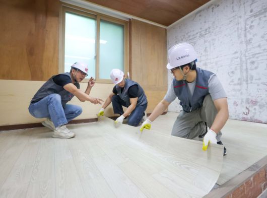 경기 평택 'LX지인 인테리어 아카데미'에서 수강생들이 시트 바닥재 시공 실습을 진행하고 있다. LX하우시스 제공 |