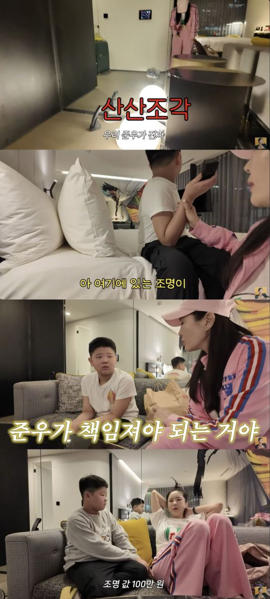 영상에서 장영란의 아들 준우는 기지개를 켜다 실수로 호텔방에 놓여 있던 조명을 떨어뜨렸다. 조명은 바닥에 떨어져 산산조각이 났고, 장영란은 비명을 지르기도 했다.