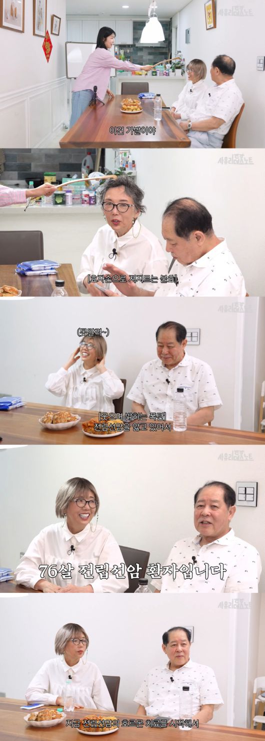 최근 사유리 어머니는 홀로 손자 젠을 돌봤던 바. 사유리 어머니는 "너무 힘들었다"라며 독박 육아 소감을 전했고 사유리는 아버지에게 "아빠는 왜 안 왔어?"라고 물었다. 이에 사유리 아버지는 "난 전립선 암을 앓고 있어서 병원에 있었다. 76살 전립선암 환자다. 호르몬 치료를 시작해서 남성 호르몬을 끊고 여성 호르몬을 주입하고 있다"라며 담담하게 말했다. 사유리는 "엄마의 암이 나았더니 이번엔 아빠가 암에 걸렸다. 나이가 있으니 병이 번갈아 찾아오는 것 같다"라며 안타까워했다.