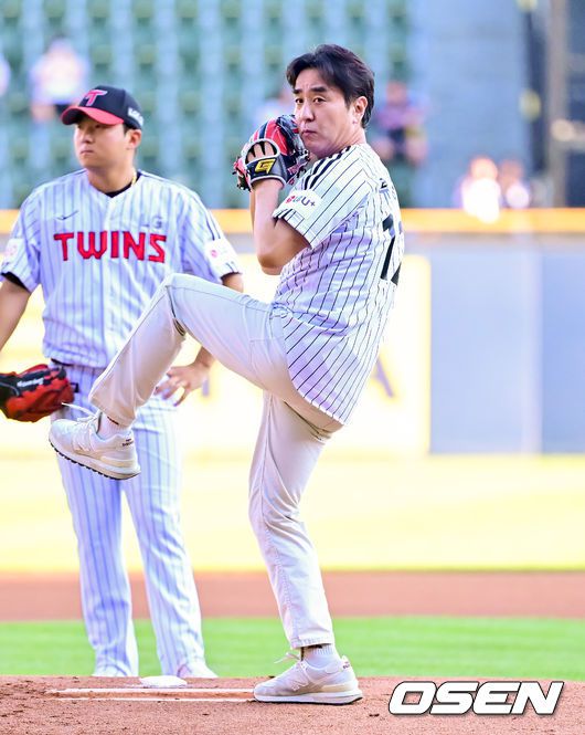 [OSEN=잠실, 박준형 기자] 10일 오후 서울 잠실구장에서 ‘2025 신한 SOL BANK KBO리그’ LG 트윈스와 키움 히어로즈의 경기가 진행됐다. 이날 경기에서 LG는 송승기를, 키움은 알칸타라를 선발투수로 내세웠다. 경기에 앞서 배우 류승룡이 시구를 하고 있다. 2025.07.10 / soul1014@osen.co.kr