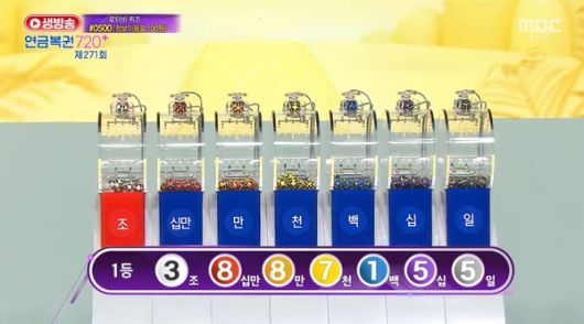 271회차 1등 당첨번호는 " 3조 887155 "이다. 보너스번호는 " 각조 438414 "이다.