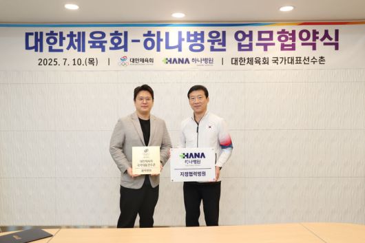 충북 진천 국가대표선수촌에서 열린 이날 협약식에는 김택수 국가대표선수촌장, 청주 하나병원 김현목 대외협력실장 등 관계자들이 참석했다.