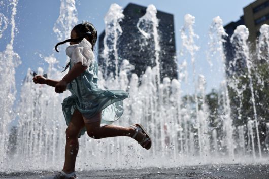 펄펄 끓는 한반도… 더위야! 가라 - 낮 최고기온이 36도가 넘은 10일 서울 광화문광장에서 한 어린이가 바닥분수에서 뿜어져 나오는 물줄기 사이를 달리며 더위를 식히고 있다. 기상청은 당분간 찜통더위와 열대야가 이어질 것으로 내다봤다. 11일 아침 최저기온은 19~25도, 낮 최고기온은 25~36도로 예보됐다.연합뉴스 |