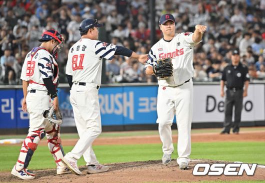 [OSEN=부산, 이석우 기자] 10일 부산 사직야구장에서 2025 신한 SOL 뱅크 KBO 리그 롯데 자이언츠와 두산 베어스의 경기가 열렸다. 홈팀 롯데는 나균안이, 방문팀 두산은 잭로그가 선발 출전했다. 롯데 자이언츠 심재민이 7회초 2사 1루 두산 베어스 케이브에게 1타점 안타를 맞고 교체되고 있다. 2025.07.10 / foto0307@osen.co.kr